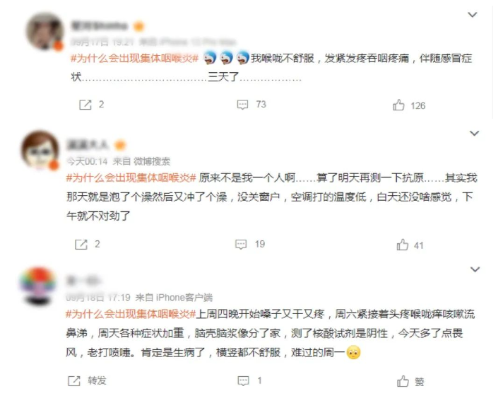 近日,話題#為什么會出現(xiàn)集體咽喉炎#在多個社交平臺登上熱搜,引發(fā)很多人的關(guān)注和討論。